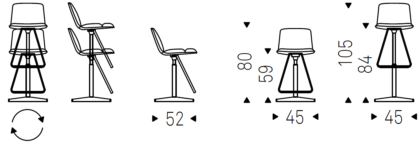 The Axel line of stools furnishes the living room with a refinement and elegance typical of Made in Italy by Cattelan. A swivel stool adjustable in height, Axel with its 4 spokes steel base and its shell in birch and poplar comfortably padded, has a sophisticated design and great comfort, combining its modern style with unparalleled practicality and lightness and the wide range of coatings to choose from.
