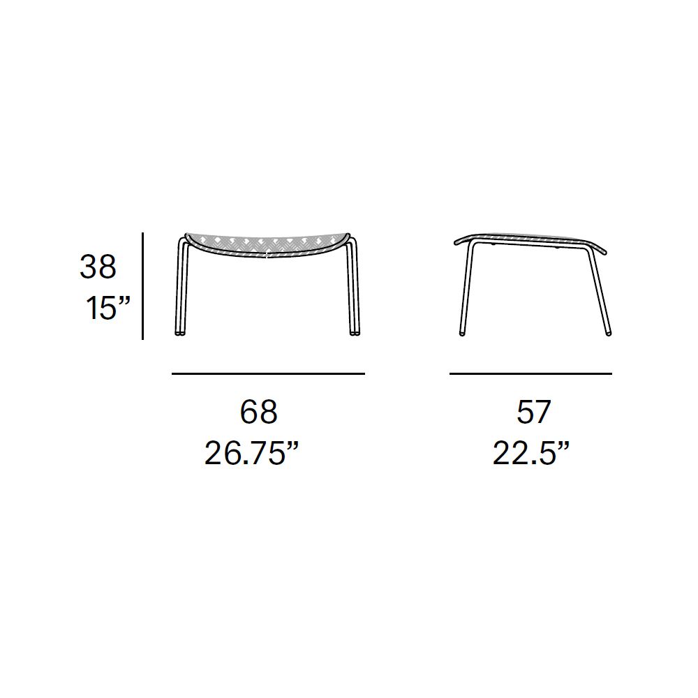 The Lapala footrest is stackable, making it easy to handle and store in outdoor and contract settings.